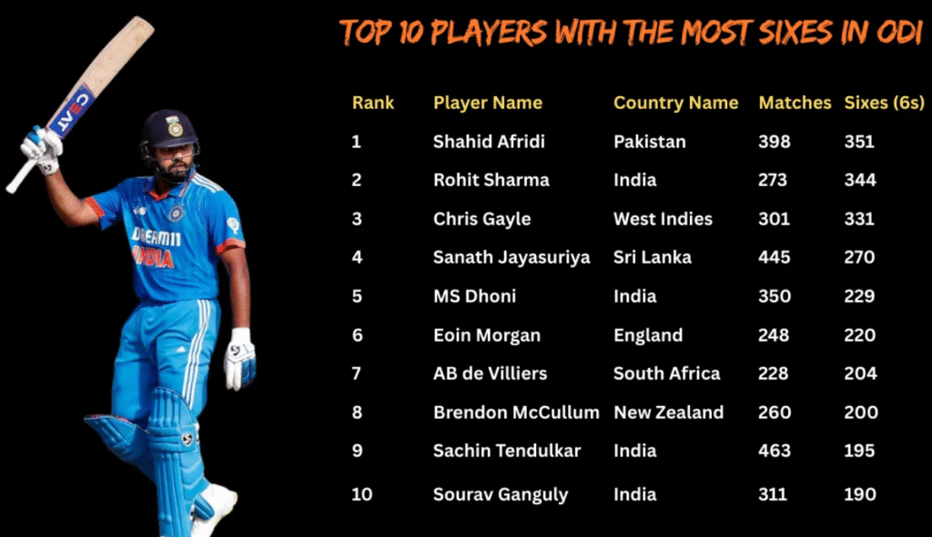 One-Day Internationals (ODIs) have seen some explosive batting performances over the years, with players showcasing their power-hitting abilities. So today we know who has hit the most sixes in ODI cricket, based on this data from.